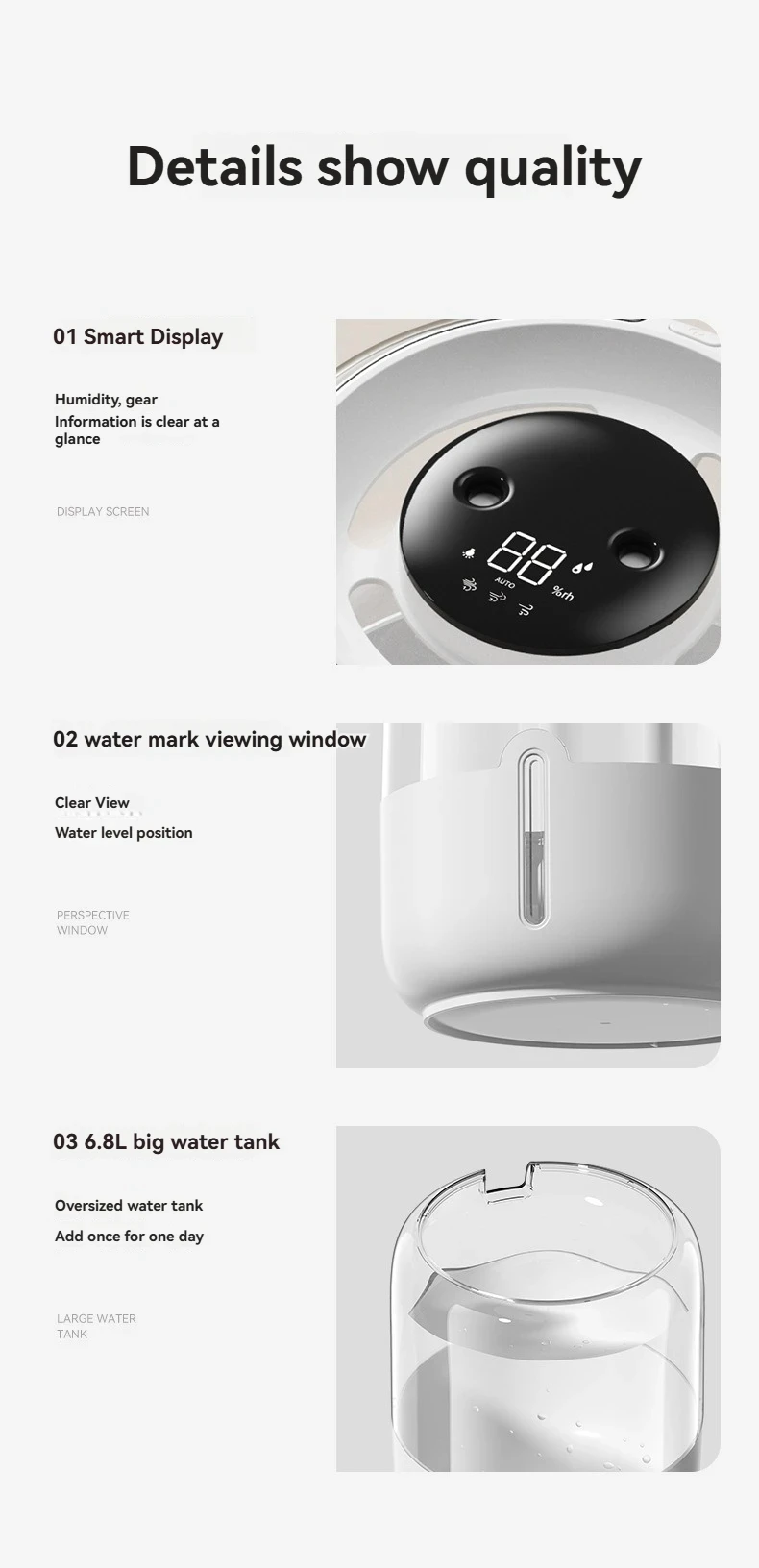 The integrated digital display provides real-time information on humidity levels, water tank status, and spray modes, making it easy to monitor and adjust settings.