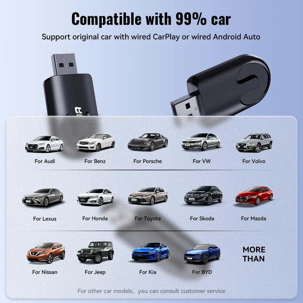 1. Please make sure your original car has OEM CarPlay,This product is suitable for 99% of cars with originalwired Carplay. BMW, Tesla and some models are not compatible.lf you are not sure. You can contactcustomer service to inquire.
