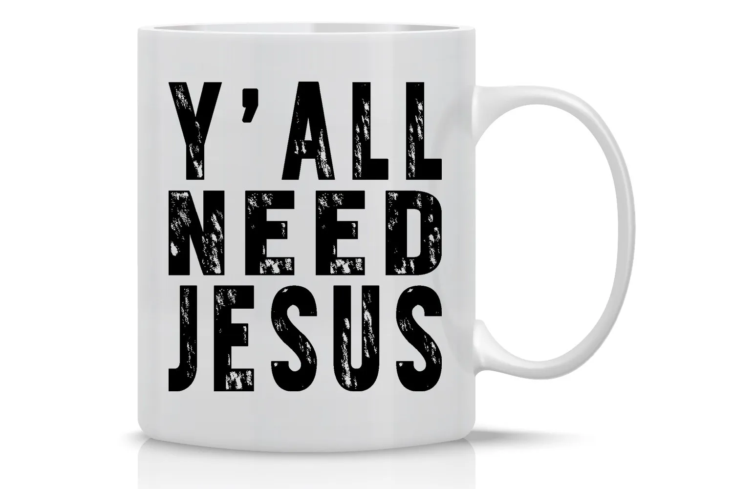 tea, and milk lovers alike. Crafted from durable ceramic, this mug features a bold, witty design that reads “Y’all Need Jesus,” making it