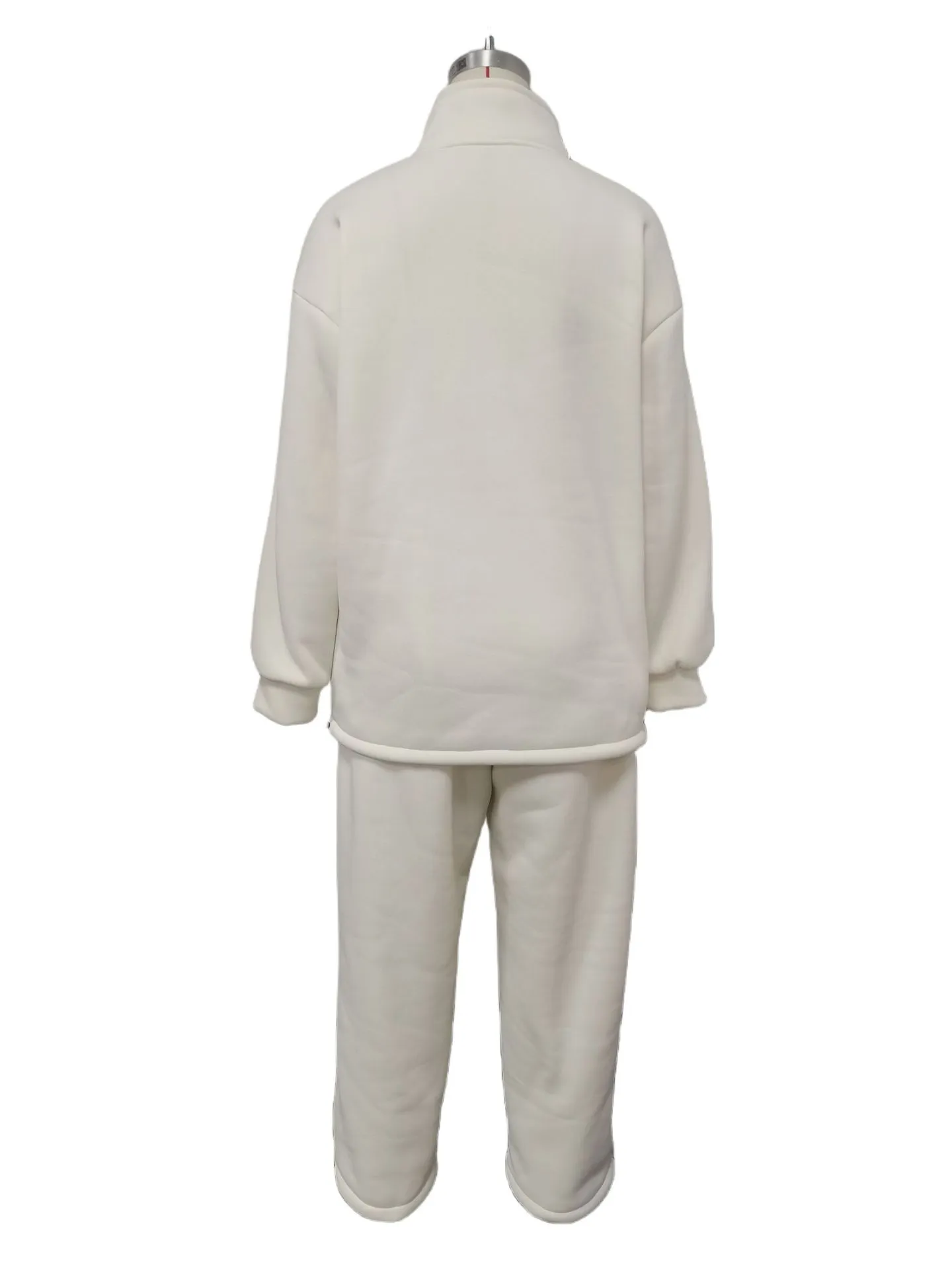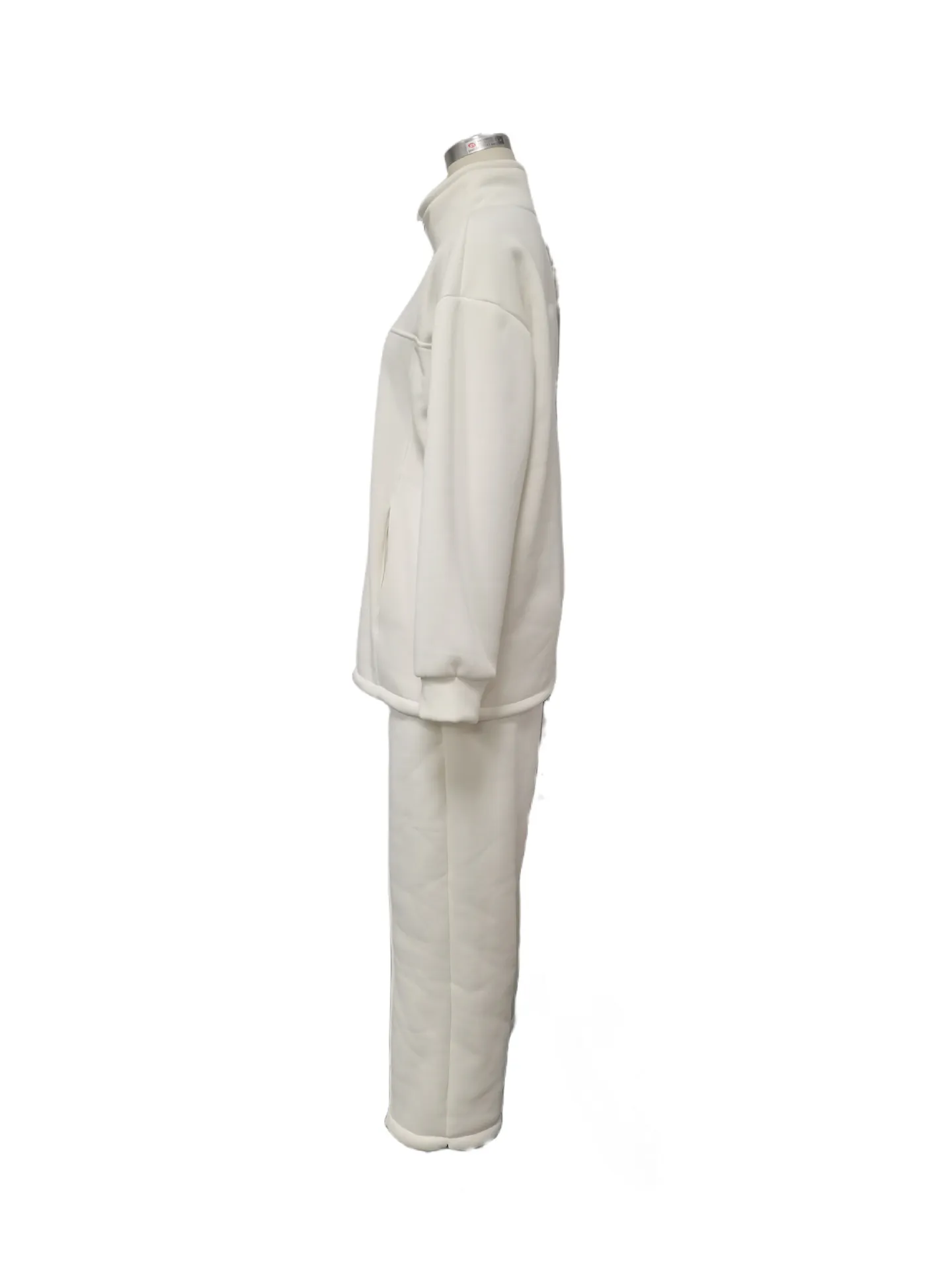 The jacket features a zipper closure and contrasting colors, offering a bold Y2K-inspired look that blends sporty chic with contemporary streetwear. The fitted design provides warmth without sacrificing style, making it perfect for outdoor activities or casual meetups. With its stand-up collar and elastic cuffs, the jacket ensures a snug, cozy fit that keeps the cold at bay, while allowing for ease of movement. The matching casual pants offer a comfortable, relaxed fit with an elastic waistband and adjustable drawstring, ensuring that you stay comfortable whether you're on the go or lounging at home.