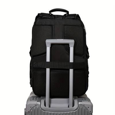 Trolley Sleeve: The trolley sleeve allows you to attach the backpack to a suitcase trolley handle, making it easy to carry