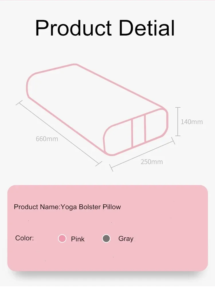 practice. The bolster pillow provides optimal support to help alleviate pressure on joints, provide lumbar relief, deepen stretches, and
