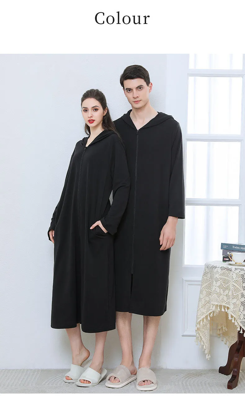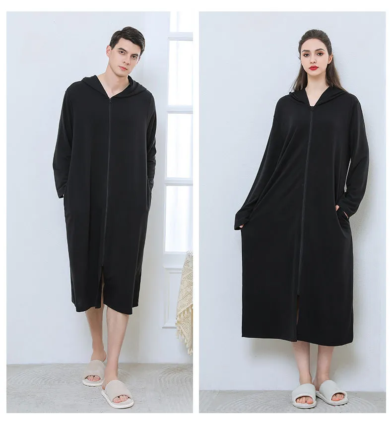 Embrace cozy comfort and style with the Zipper Bathrobe Couple Hooded Nightgown Thin Pajamas. Perfect for couples who want to share warmth and comfort, this matching set features soft, breathable fabric that is ideal for lounging, relaxing at home, or unwinding before bed. The unique zipper design makes it easy to slip into, while the hooded feature adds extra warmth and comfort, making it perfect for cool evenings or mornings.