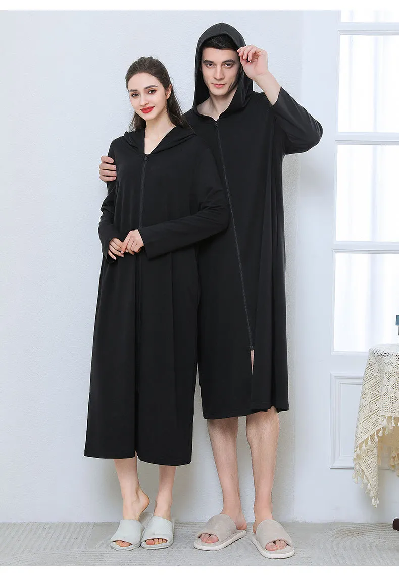 The Zipper Bathrobe Couple Hooded Nightgown Thin Pajamas offer the perfect combination of comfort, style, and convenience. Made from soft, breathable fabric, these pajamas keep you and your partner cozy and comfortable. The hoodie adds extra warmth, while the zipper design provides easy wear. Whether you're relaxing together or getting a good night’s sleep, this pajama set is a must-have for couples who value both comfort and style.