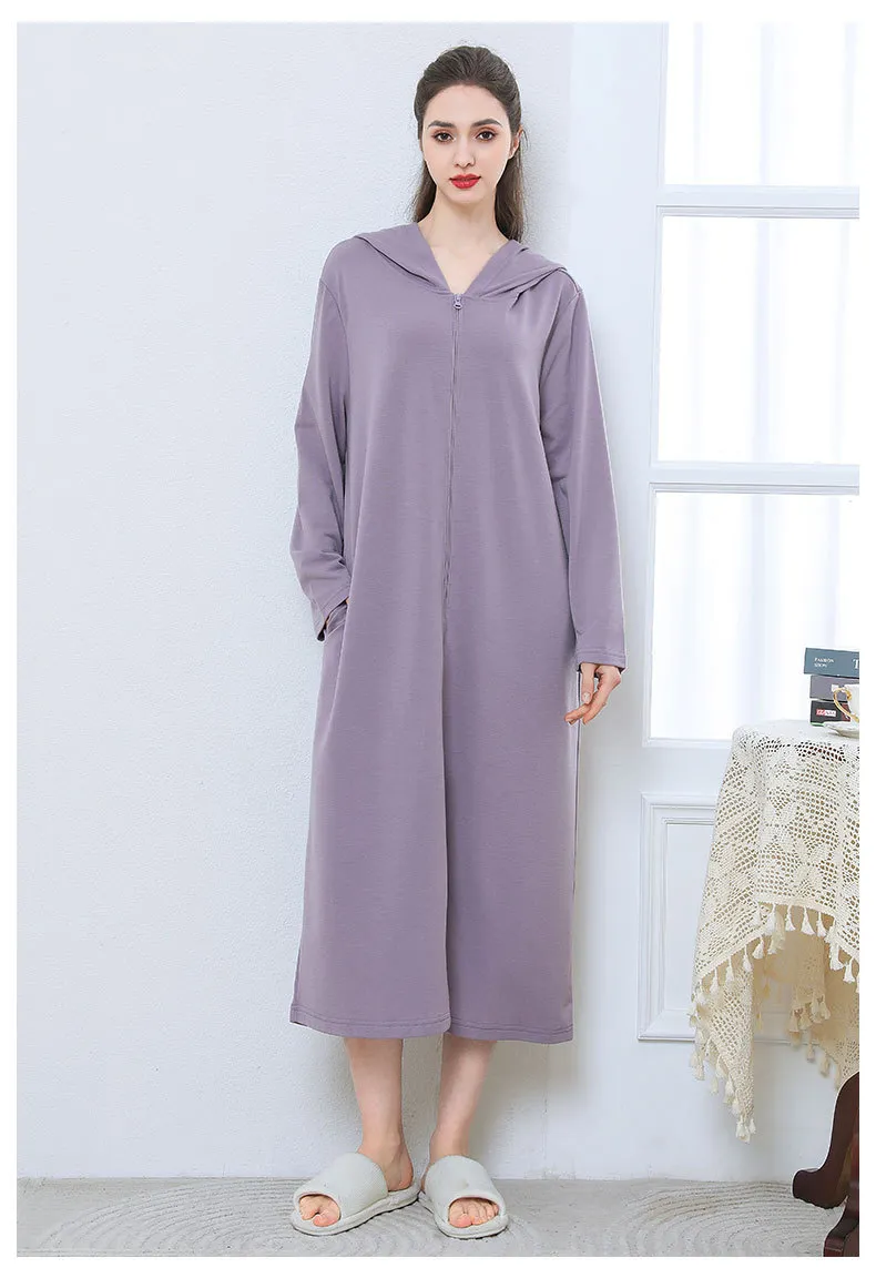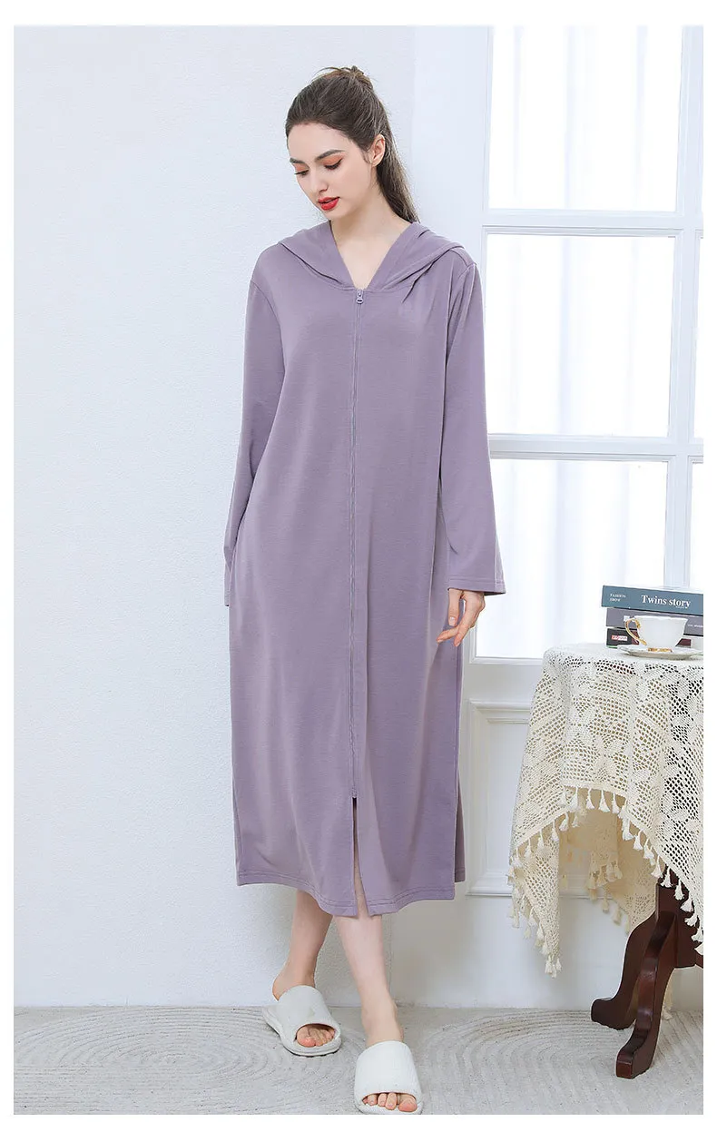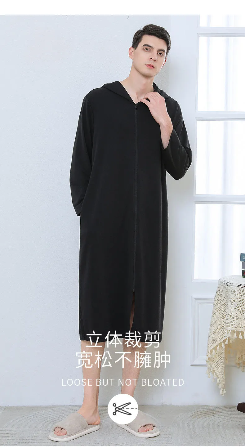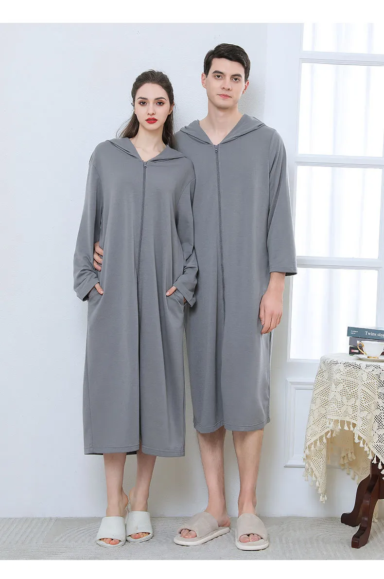 Zipper Bathrobe Couple Hooded Nightgown Thin Pajamas