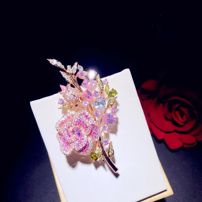 Zirconium Full Diamond Rose Bouquet Brooch