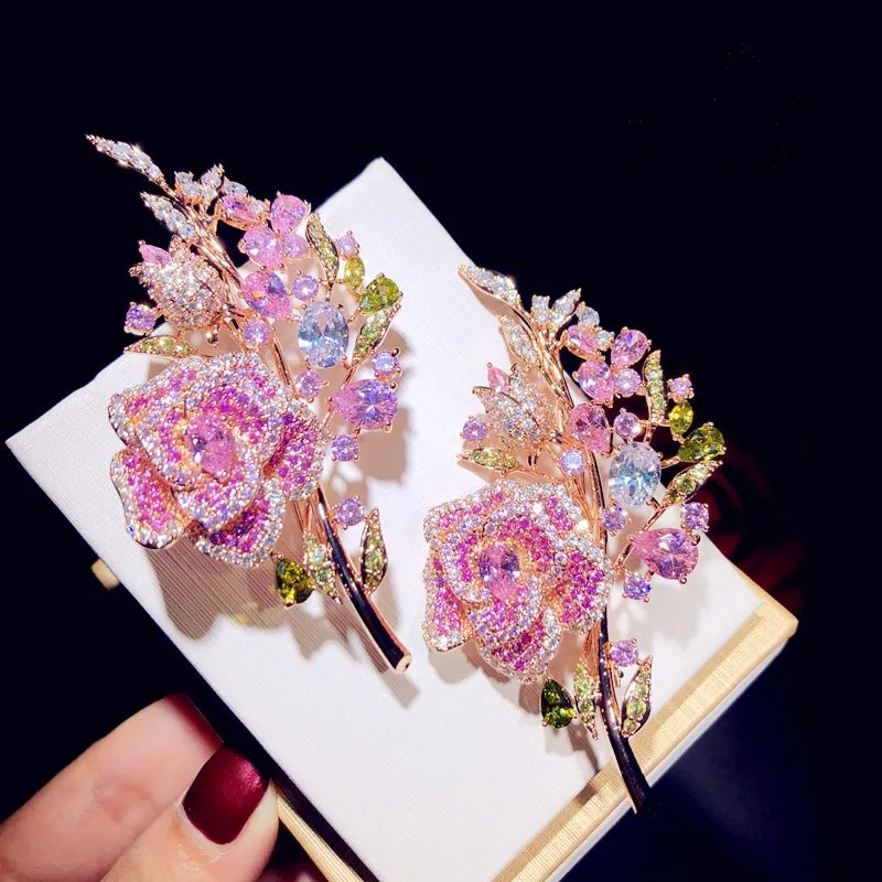 Zirconium Full Diamond Rose Bouquet Brooch